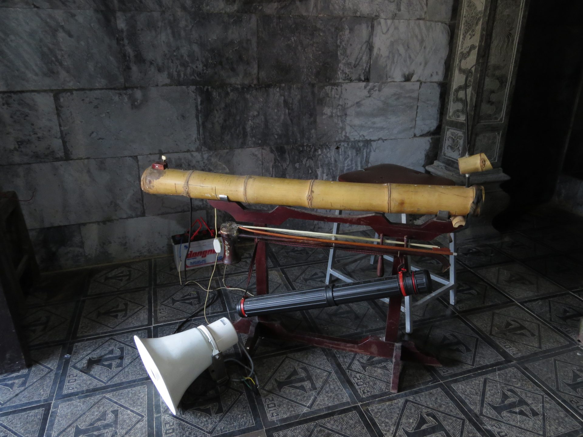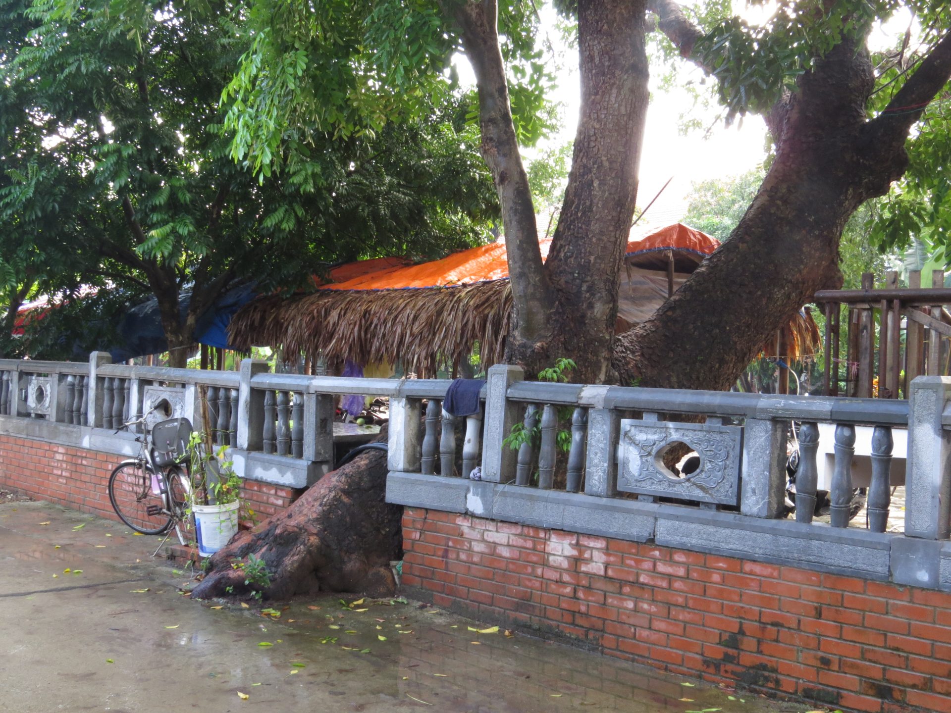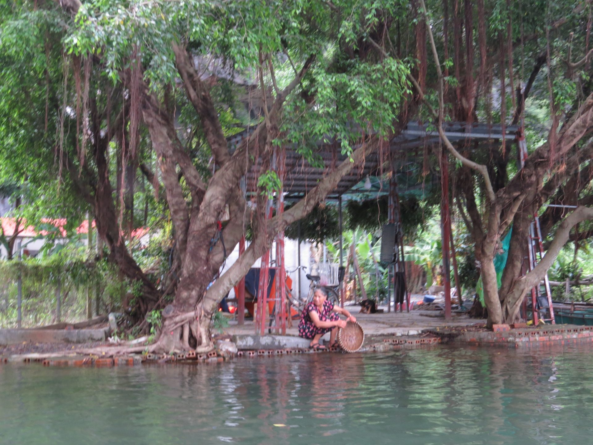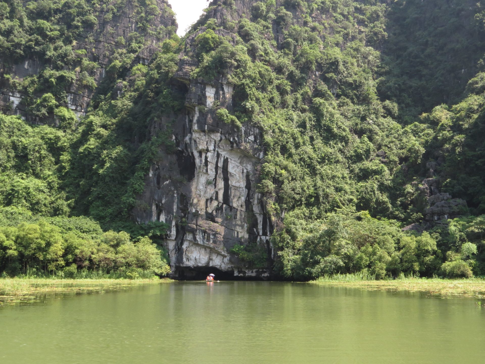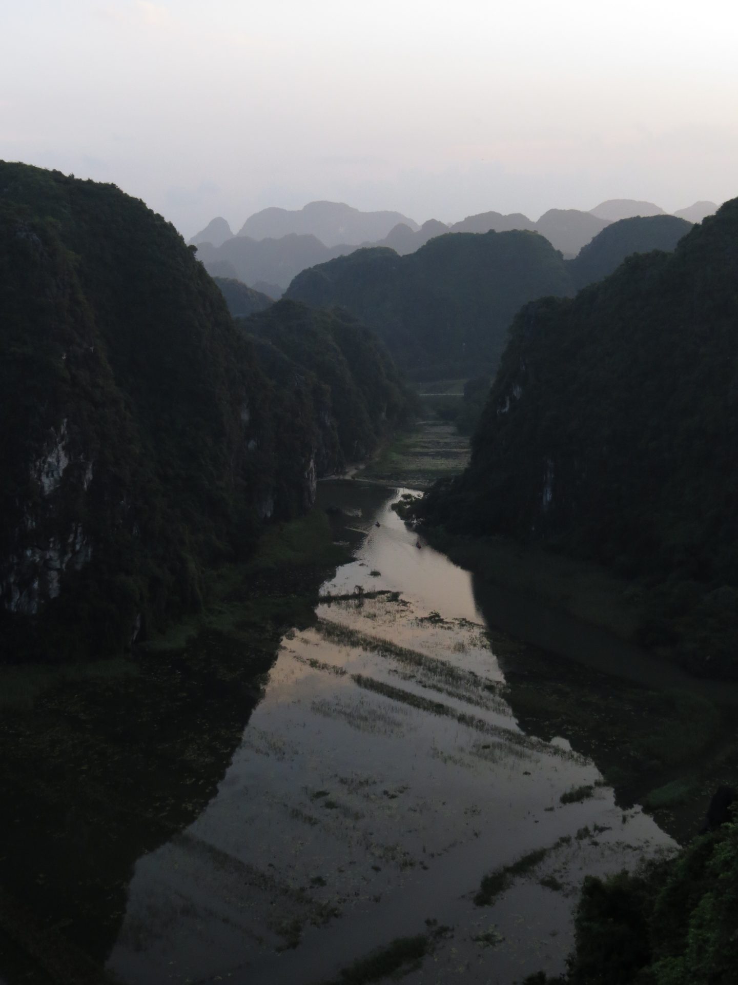 Persze ahogy kisütött a Nap az iszonyatos pára is jött vele. 15 perc vissza a motorhoz. El is döntöm, hogy csak semmi felesleges séta, ahová lehet, megyek motorral, főleg, ha ilyen sokmindet akarok megnézni, és közben az ég is leszakad. Akkor pattanok a motorra és irány Hang Mua, a hegytető a sárkánnyal, meg az 500 db lépcsővel. Útközben valaki mutatja, integet másik motorról nekem az utat, hogy ne arra menjek, amerre tervezte a Google. Lehet, hogy lett egy villámárvíz, a pagodát is eldöntötte a víz. De egyébként nem tudom miért terelt ki a főútra, de hiszek neki. 2 perccel hosszabb. Akkor főúton megint volt egy gyorsforgalmi úton szembe menés, mert elmentem a lehajtó mellett. Hát senki sem akadt ki. Nagyon rövid volt csak. Megérkezem, parkolás 15k. A legdrágább az eddigi úton. Eddig 10k-nál nem volt több. Aztán a barlang még 80k. Drága egy nap ez a mai… de egyébként ezen el sem gondolkodtam. Kell és kész.