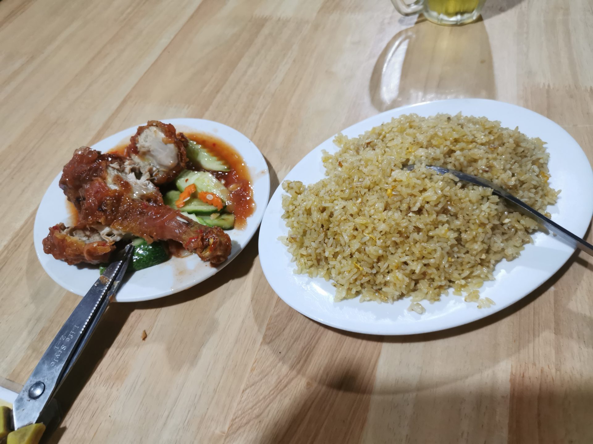 Na ez így más. Ez így okés. Máskor annyira kevés hús volt a rizsben, hogy alig lehetett észrevenni. Kapok ollót, mert egyrészt itt soha, senki, semmit nem eszik kézzel, másrészt egyébként tök praktikus, mert tényleg sokkal egyszerűbb levágni a húst a csontról vele. Itt kézzel nem igazán érnek a kajához. Ami egyébként ebben a klímában kifejezetten higiénikus. Szóval kapok ollót, de aztán látja a néni, hogy bénázok az ollóval, kiveszi a kezemből, áll mellettem és csodásan falatokra vágja a kaját, de amikor levágja az első kettő falatot, azt odarakja elém a rizsre és rám szól, hogy egyek. Semmi mosoly, csak a nyers törődés. Mondom neki mosolyogva, hogy mama… de persze nem érti a poént, mutat a fiára, hogy igen, neki a mamája. Sebaj, én mosolygok ezerrel, ahogy ott kvázi megetet.